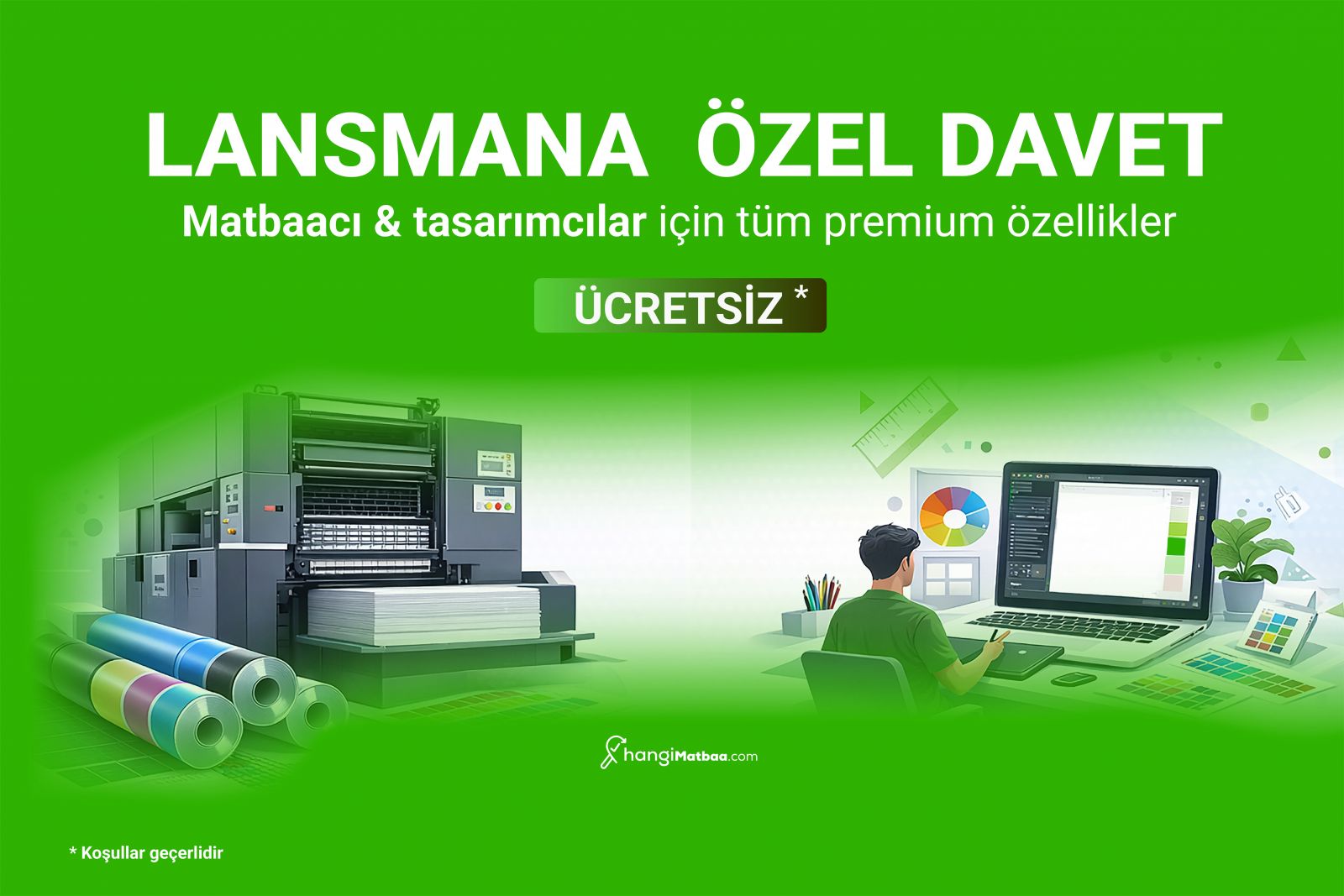 Bu duyuru kapsamında, ilk 100 matbaa için Hangimatbaa platformunda sunulan premium özellikler, 6 (altı) ay süreyle ücretsiz olarak sağlanmaktadır.